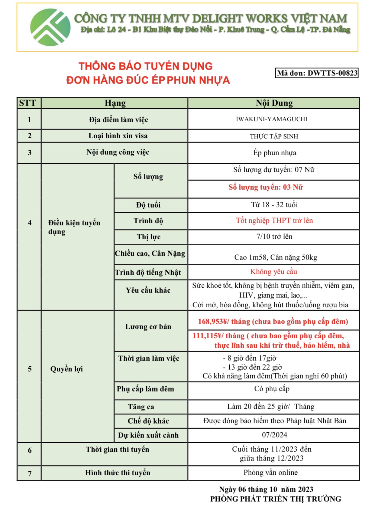 XUẤT KHẨU LAO ĐỘNG DELIGHT WORKS